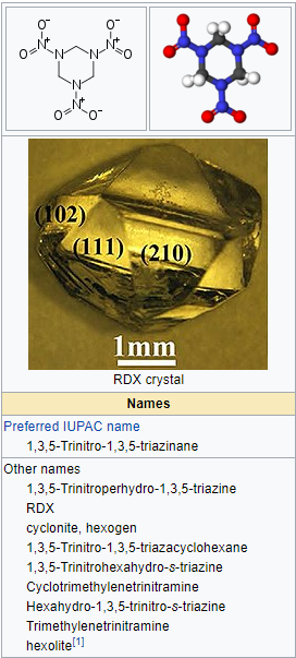 RDX is an organic compound with the formula (O2-N2-C-H2)3.