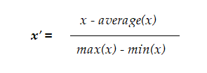 • **Mean normalization: **This method uses the mean of the observations in the transformation process: