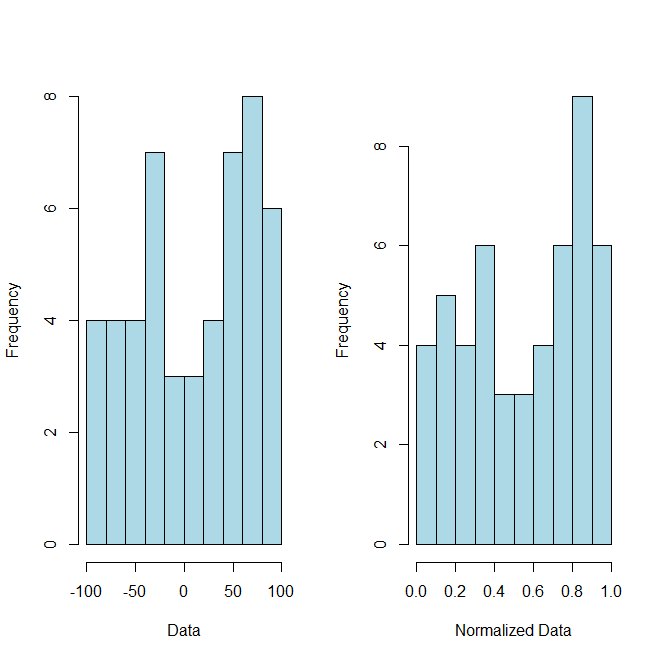 where x = (x1, (...), xn) and zizi is now your ithith normalized data. As a proof of concept (although you did not ask for it) here is some R code and accompanying graph to illustrate this point: