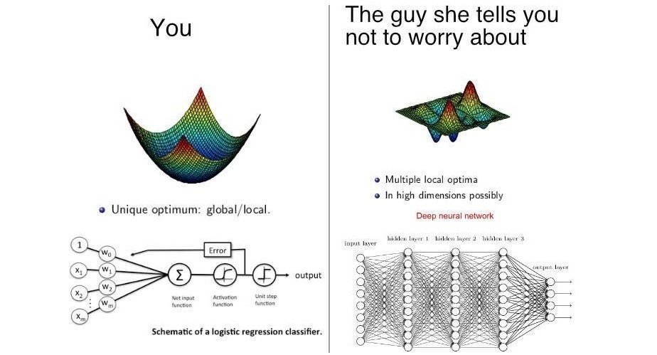 return -1/l * np.sum(y * np.log(prob) + (1 - y) * np.log(1 - prob))To train the model with gradient descent, we should compute gradients. To be specific, we need a derivative of loss function over each weight.