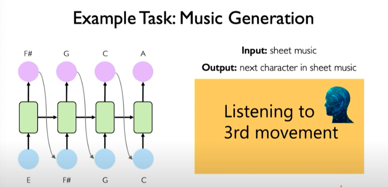 We can train a model to predict next musical note in sequence and generate brand new musical sequences. We can treat is a next time step prediction problem.