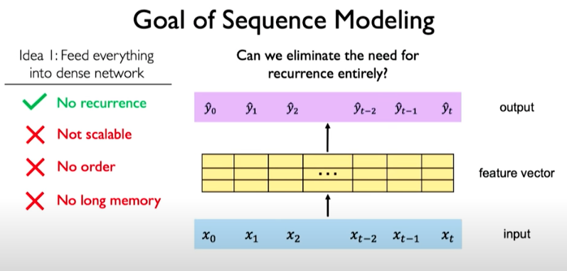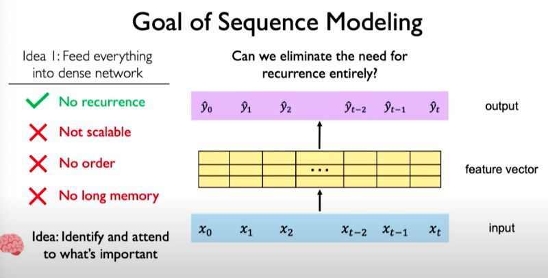 The other issue is that we don’t have a notion of what points in our sequence is important. This is the key idea behind the concept called attention that will be discussed next.