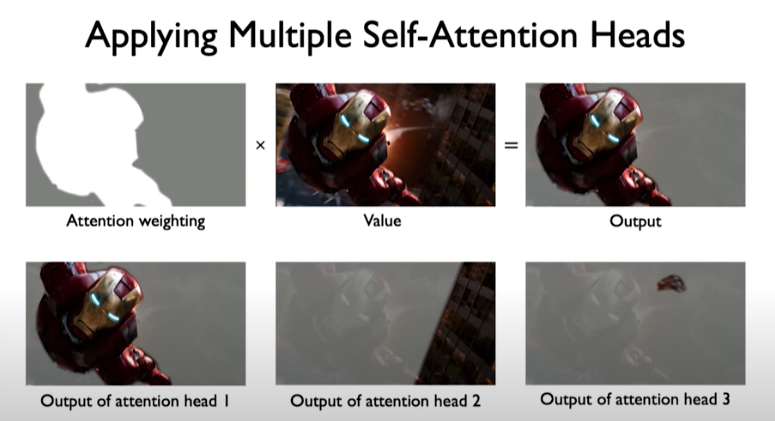 We can do this operation multiple times. In other words, we can implement different attention heads that attend to different things in the input.