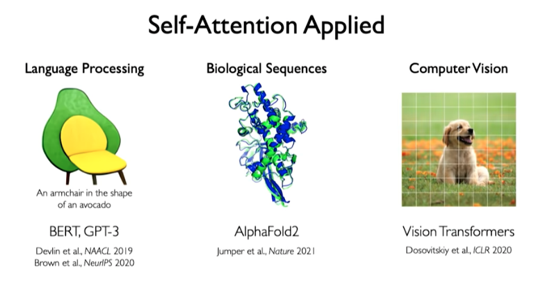 The idea of self-attention is now being applied to advance machine learning models in many areas such as language processing, biological sequences, and compute vision.