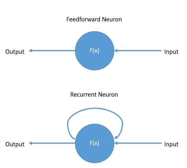 The basic difference between a feed forward neuron and a recurrent neuron is: