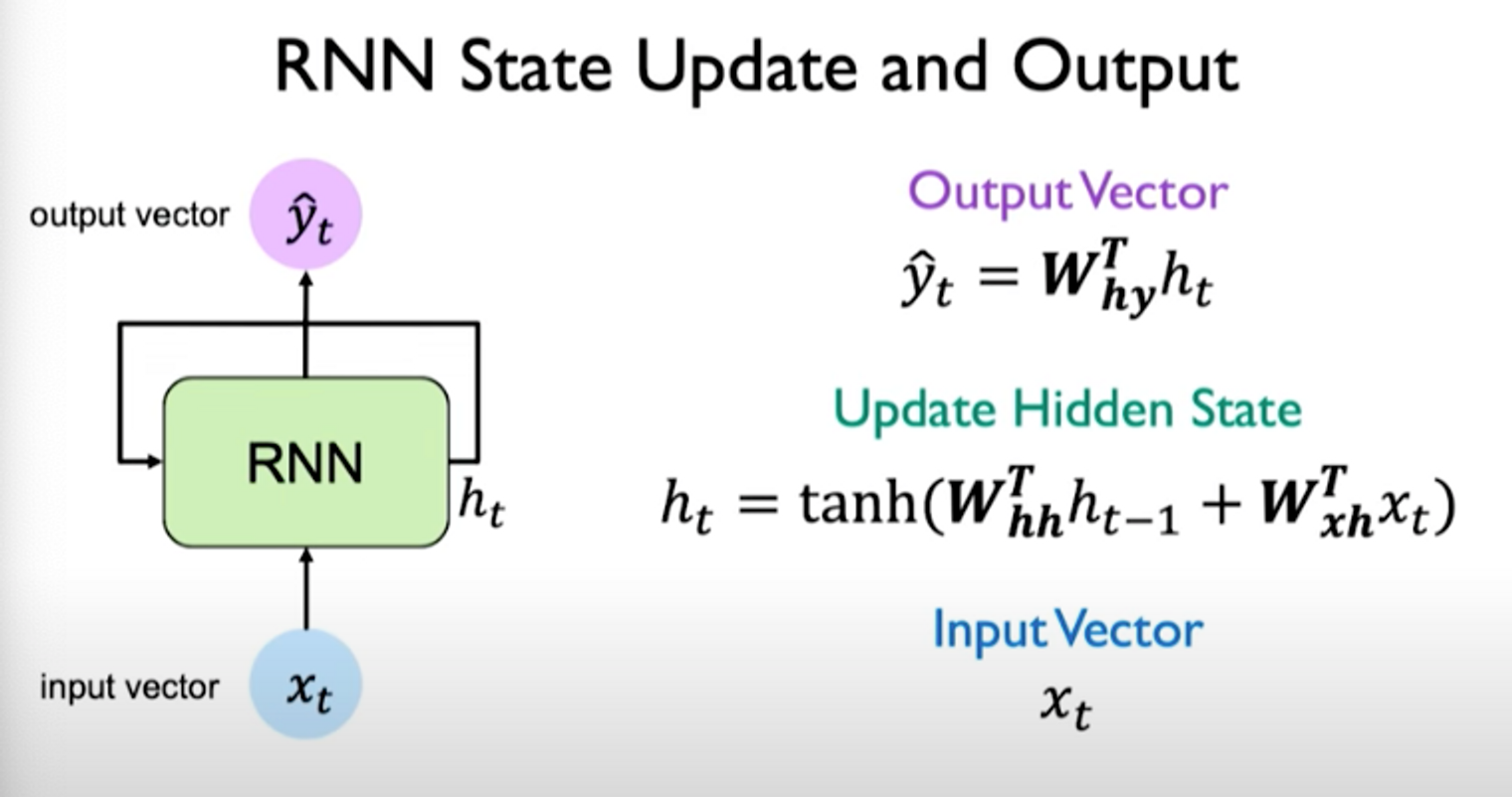 The steps to update hidden state and output are shown below: