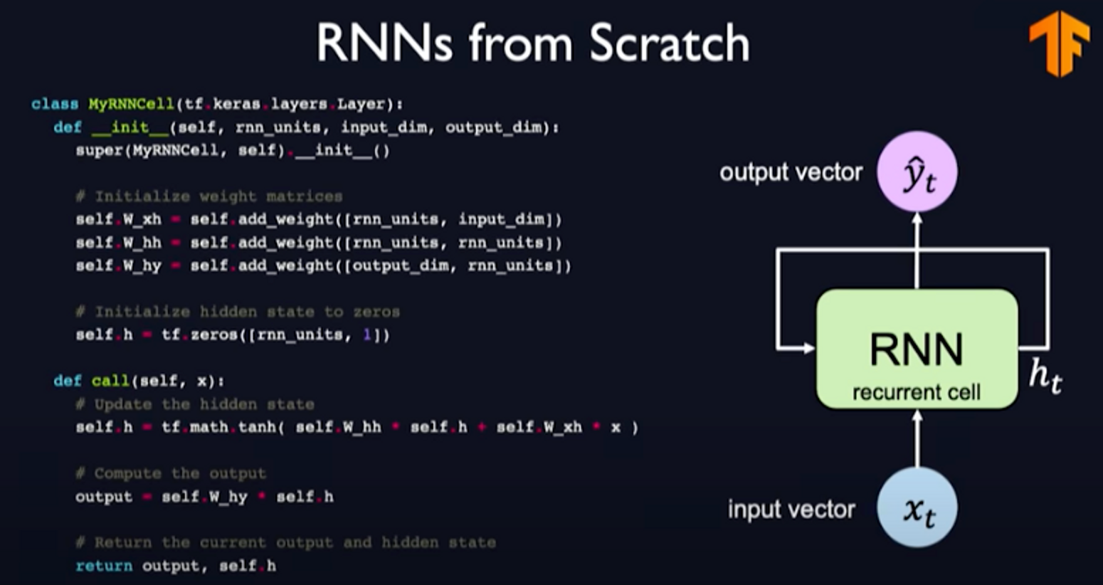 Implementing RNNs from scratch could look as follows:
