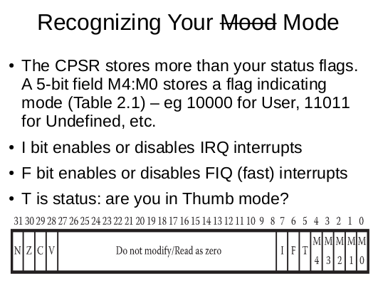 When operating in the 16-bit Thumb state, the application encounters a slightly different set of registers, without R8-R12