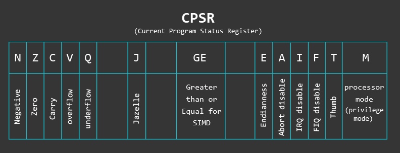 - Can be either little-endian or big-endian as controlled by bit 9, the E bit, of the Program Status Register (CPSR)