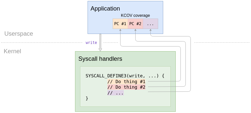 When KCOV (linux native) is enabled, the compiler inserts a callback into each basic block when building the kernel. In turn, the runtime part implements these callbacks to record the addresses of executed basic blocks. These addresses are then exposed via