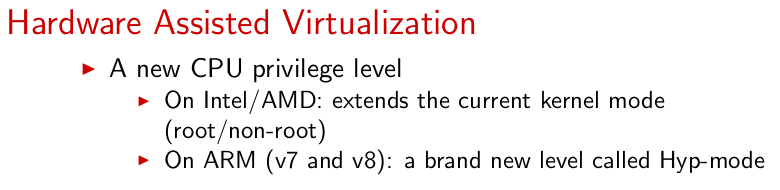 The ARM virtualization extensions are based on the security extensions, commonly known as TrustZone.