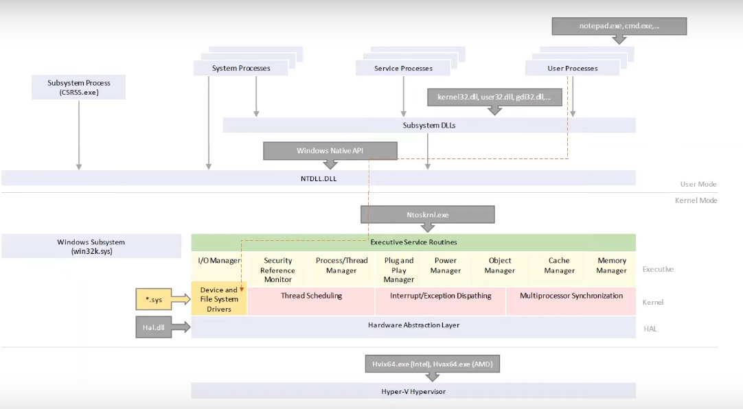 Kernel32 — — ntdll — — — — — — — — — — — — — — — — ntoskrnl