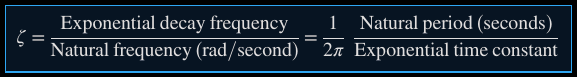 - If the ratio is zero, that indicates there is no damping present and as such the system will oscillate forever (oscillations are the natural frequency response). A system with ratio between 0 & 1 has some amount of damping and accordingly the oscillations will die down slowly or quickly as damping ratio changes from 0 to 1.