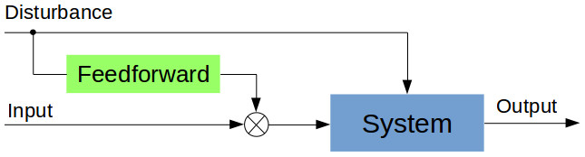 The open loop control system can adjust it’s input based on known disturbances. This control systems are called feedforward control systems. Knowing or measuring the amplitude and type of disturbance, the input signal can be modified in such a way that it compensate for the changing output.