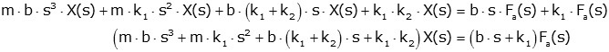 Now solve for the ration of X(s) to Fa(s) (i.e, the ration of output to input). This is the transfer function.