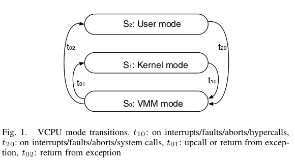 Syscall <----------> Hypercall Xen hypervisor does not require cache flushing on switching between virtual priviledge modes inside the same virtual machine. The page table of a process has non-overlapping page mappings for the process memory, OS kernel memory, and VMM memory.